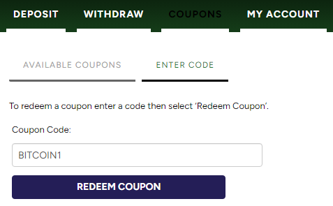 Selecting "Available Coupons" from the coupon section of the cashier will display a personalised list of the bonuses available to you.