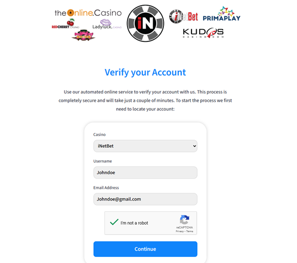 Enter your account details into the fields as shown below, they must match your casino account exactly.