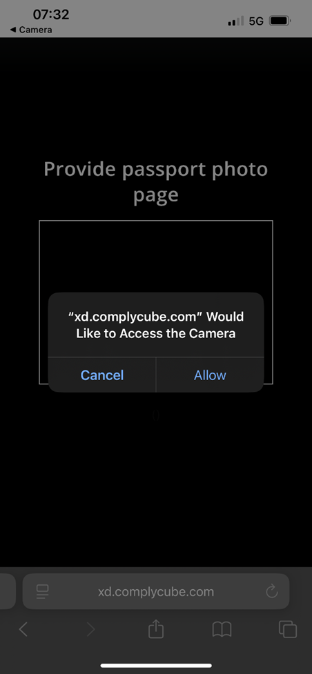 Once you have uploaded your document, you will be prompted to take a selfie.